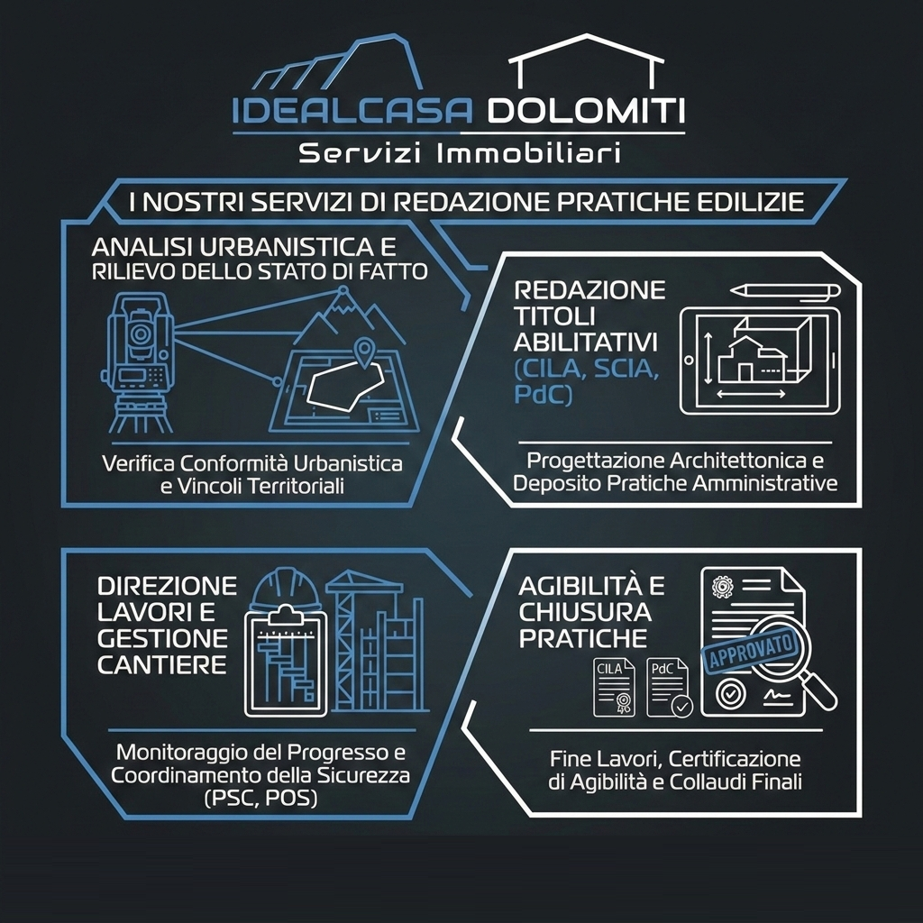 IDEALCASA DOLOMITI offre una gamma completa di servizi immobiliari, pensati per soddisfare ogni esigenza. Dalla vendita all'affitto, dalla ricerca personalizzata alle valutazioni professionali, alla progettazione ed assistenza tecnica, siamo al vostro fianco con competenza e dedizione per garantire la migliore esperienza possibile.